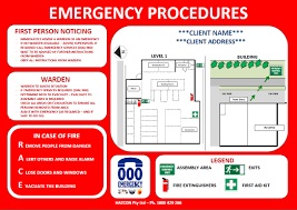 The Emergency ecvacuation maps come in two sizes (17 x 11 and 8.5 x 14) and are placed in acrylic covers.