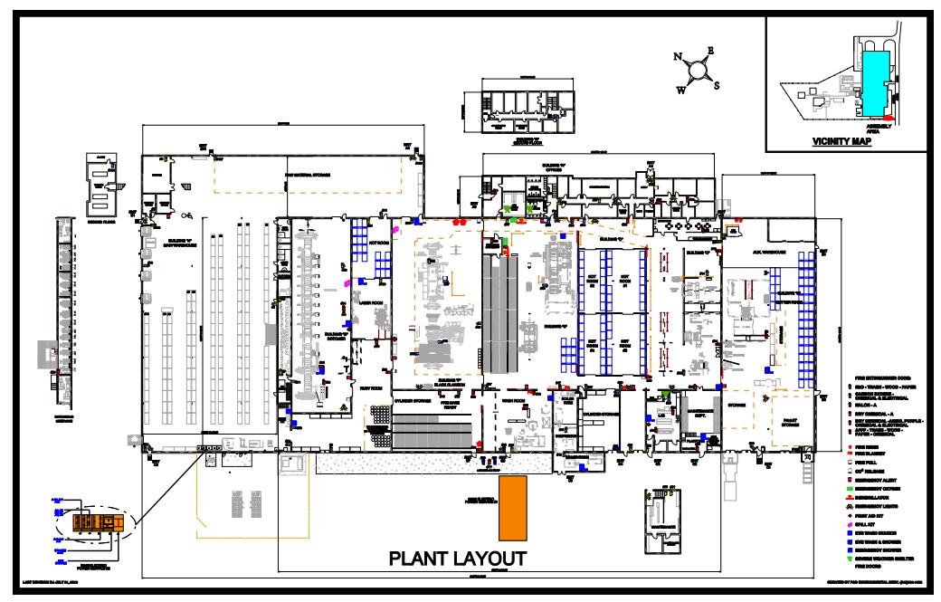 P & D Environmental Services can survey your facility and provide you with a current, easy to read "44 x 34" laminated facility layout. The layout is detailed with information such as current grid lines, machines, storage locations, mains for gas, water and electric, along with fire extinguishers, fire pulls, spill kits and etc.
